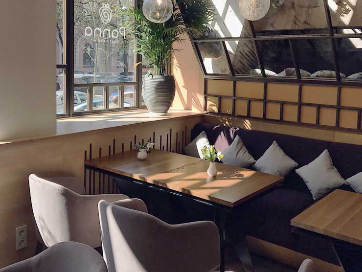 Нове місце в Києві Panna Pasticceria, що спеціалізується на італійській кухні, відрізняється не тільки гастрономічними вишукуваннями, а й особливою атмосферою затишку. Створенню відповідної обстановки сприяли індивідуальні меблі, розроблені дизайнерами Loft Buro і виготовлені TRONE GRANDE ексклюзивно для Panna.